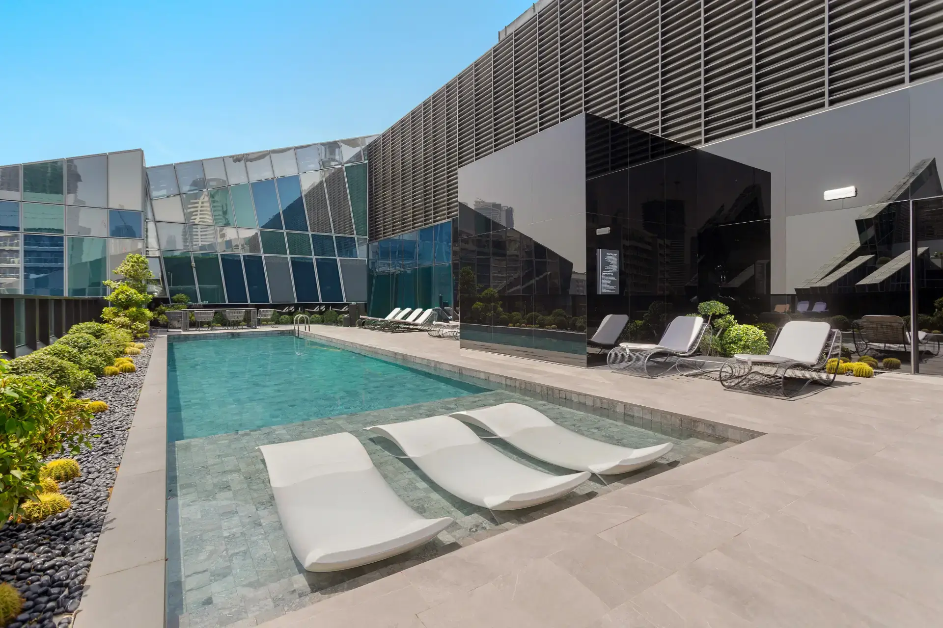 - Piscine rooftop avec vue imprenable sur Downtown Dubai